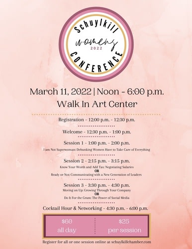 The Schuylkill Women in Business Committee for the Schuylkill Chamber of Commerce proudly hosts our 2nd annual women's conference.Timeline of Events:
