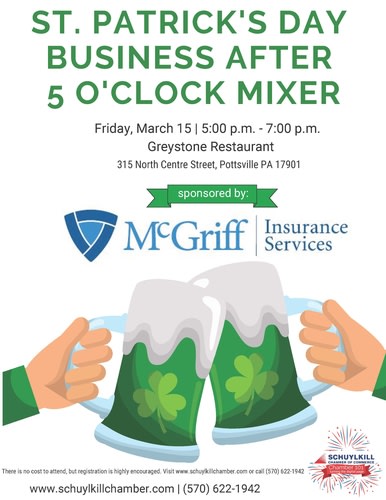 The St. Patrick's Day Business After 5 O'clock Mixer is sponsored by McGriff Insurance Services.