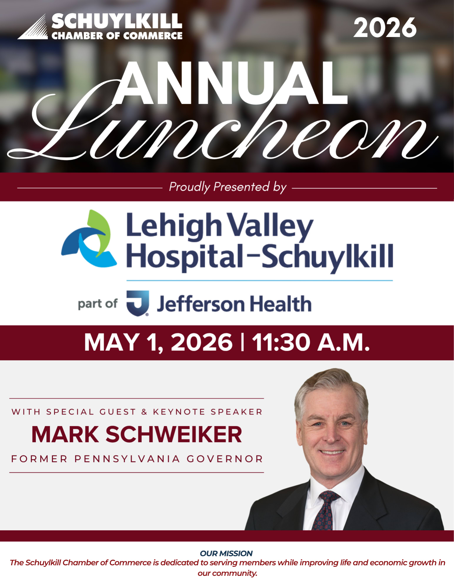 Join us for our Annual Luncheon, featuring special guest speaker Mark Schweiker, former Pennsylvania Governor.