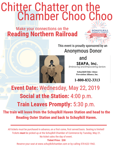 This event is sponsored by an anonymous donor and Schuylkill Elder Abuse Protection Alliance (SEAPA)We will meet at the Schuylkill Have station for a pre-event social with hors d'oeuvres and beverages.