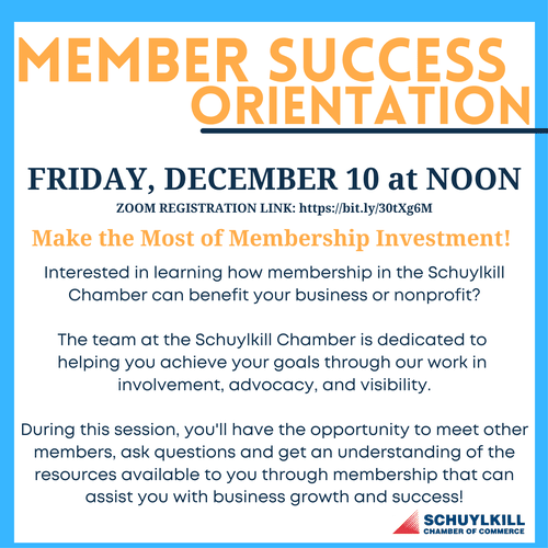 Make the most of your membership investment!If you are interested in learning how membership in the Schuylkill Chamber can benefit your business or nonprofit, we encourage you to attend this Zoom session!
